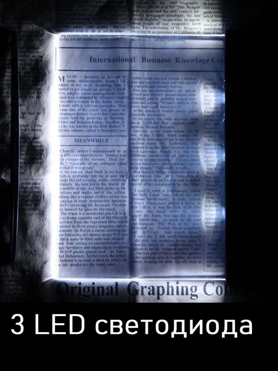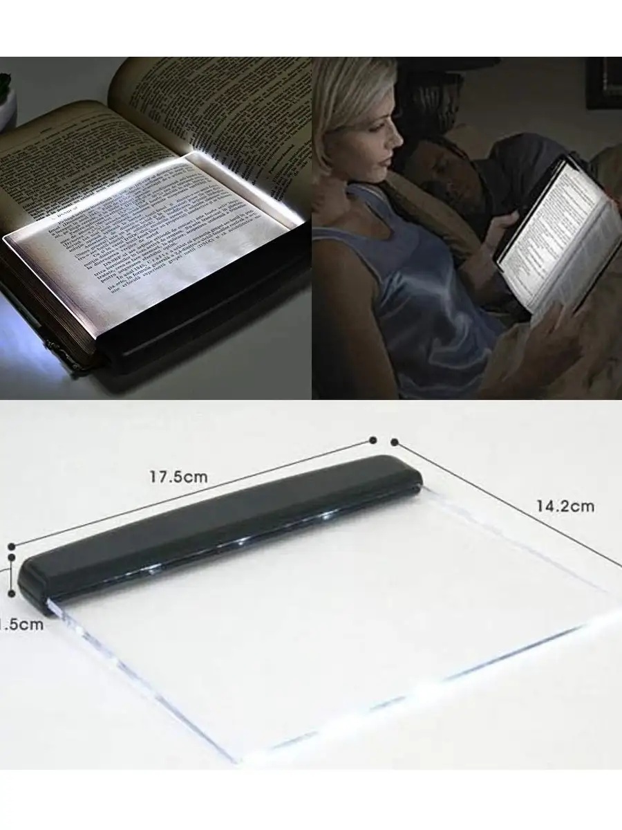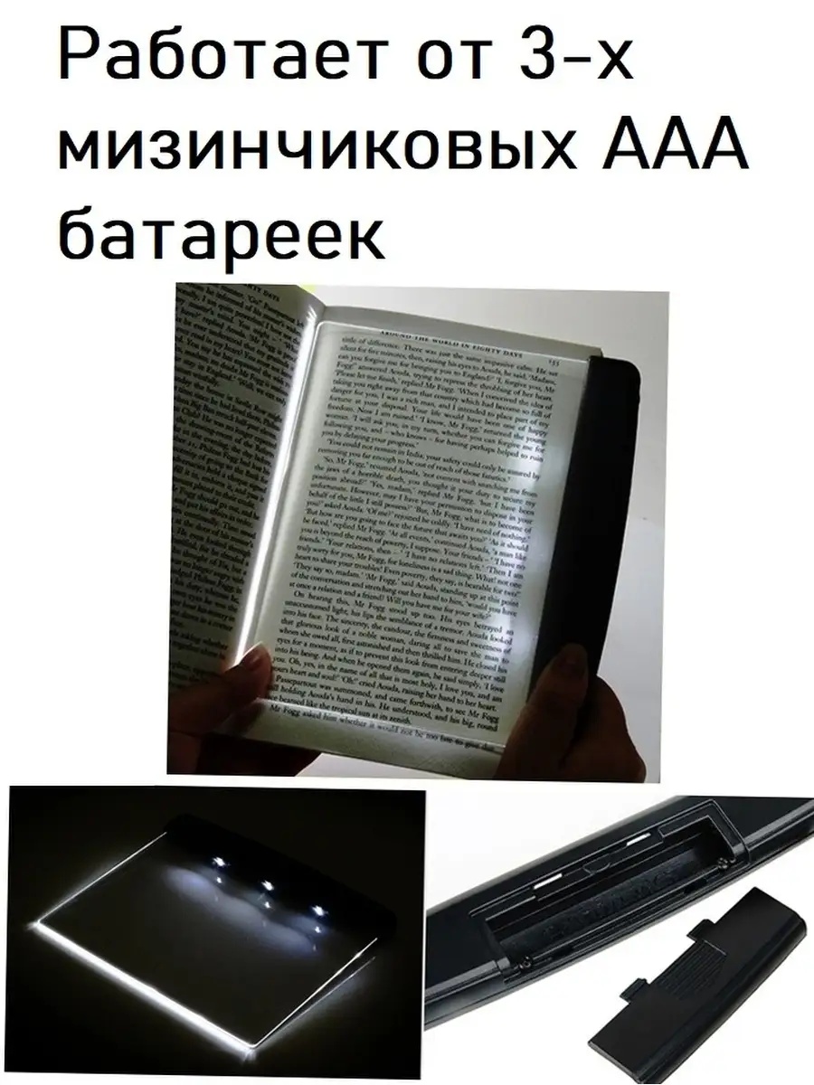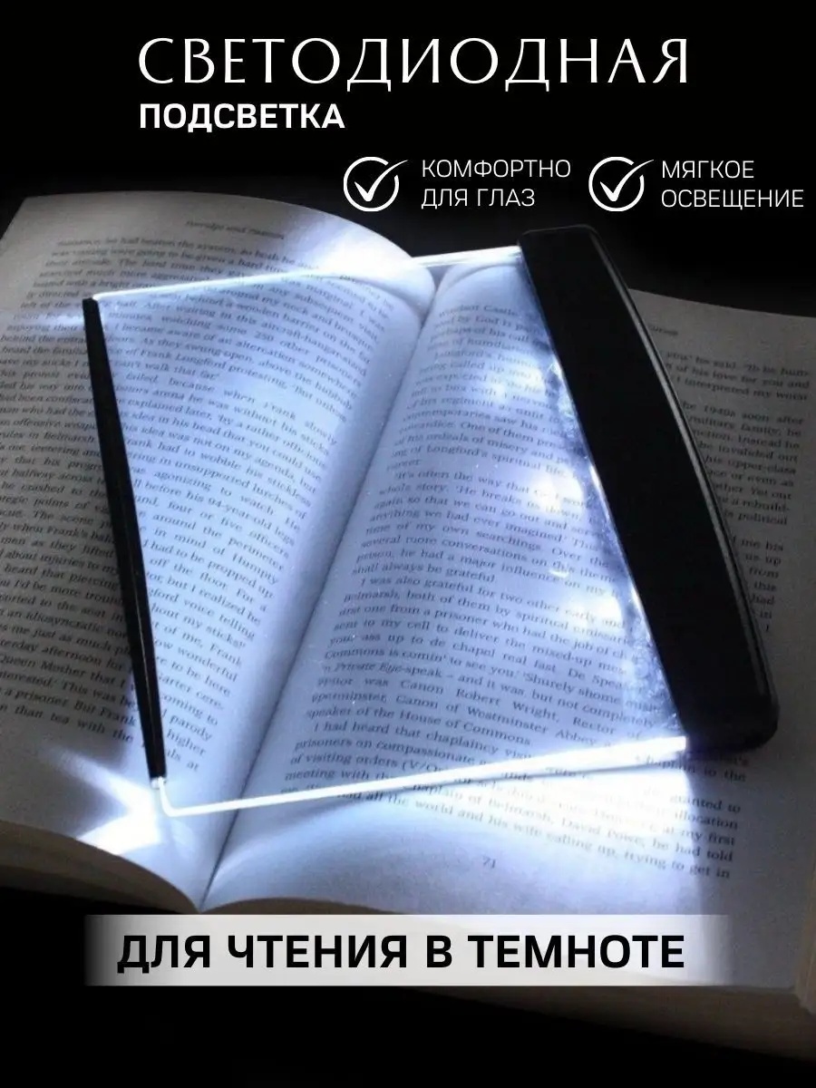 Прозрачный планшет со светодиодной подсветкой для чтения книг и другой литературы в темноте. Удобная закладка для книг. 3 светодиода равномерно распределяют свет по всей поверхности планшета, что позволяет читать, не напрягая глаза.